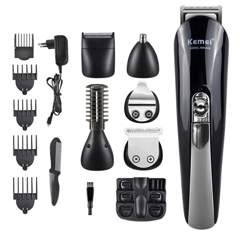 Набір для стрижки волосся , являє собою універсальну машинку для стрижки з 11 насадками. Дві насадки для стрижки ширини, насадки регулювання довжини 3-12 мм, тример для носа, дизайнерський тример, вузький тример, сіткова бритва, насадка 3-4,5 мм. Насадки з нержавіючої сталі, вбудований акумулятор і індикатор заряду. Відмінний набір на всі випадки життя, замість декількох приладів Вам достатньо мати один такий.